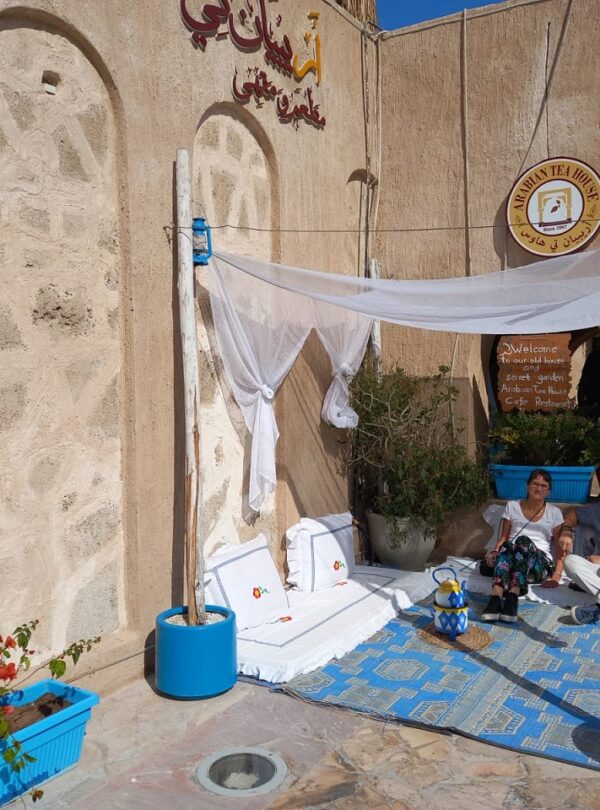 Admira la arquitectura tradicional con casas antiguas coronadas con torres de viento, descubre la artesanía local y saca fotos de las tiendas beduinas y las pinturas artísticas que adornan las paredes.