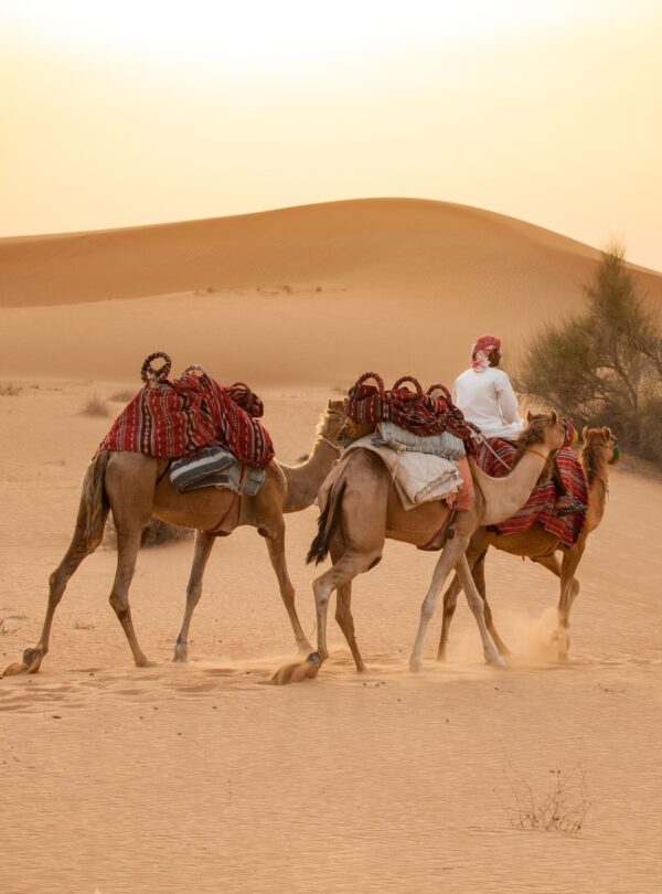 Bebidas: Ghawa, Chai, Haleeb Bosh (leche de camello), Vimto, Agua