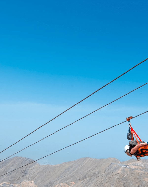 Cuando inicies tu vuelo al estilo Superman, irás a toda velocidad (a 120-150 km/h) por las formidables líneas de acero durante aproximadamente tres minutos, apreciando el inigualable esplendor montañoso de Jebel Jais. Justo antes de que la experiencia llegue a su fin, te detendrás en una espléndida plataforma suspendida con fondo de cristal. Al estar completamente anclada en la montaña, te dará la sensación definitiva de flotar por los aires.