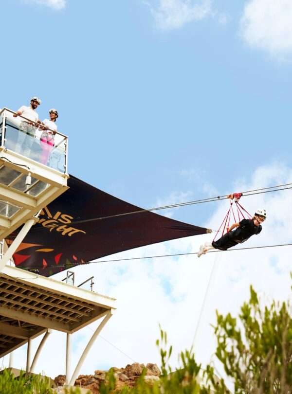Tras una eficaz sesión informativa sobre seguridad, puedes ponerte el equipo de seguridad y el arnés que te han proporcionado. Siente cómo late tu corazón una vez que te lances desde la enorme plataforma transparente que se asemeja fácilmente a un halcón gigante. Esta actividad puede realizarse incluso con tus amigos, gracias a dos cables suspendidos a una altura supervertiginosa de 1680 metros.