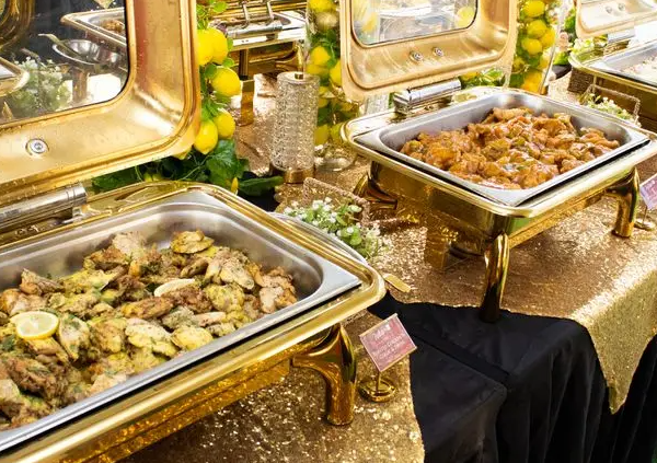 Main Courses: Thai Chicken Curry, Chicken Fricassee, Fish in Lemon Butter Sauce, Vegetable Karai, Basmati Rice.